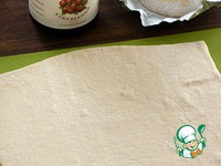В центр раскатанной части слоеного теста положить клюквенный или брусничный соус. Соуса можно и побольше, чем у меня на фото. |