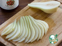 Сверху аккуратно положите дольки груши, обильно посыпьте мускатным орехом. Вот тут появится такой запах, что придется бить себя по рукам, чтобы не съесть все еще на этом этапе. |