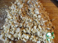 Орехи мне захотелось не перетертые в ступке, а рубленые ножом. Я взяла ну совсем нетрадиционный кешью. Все таки праздничное блюдо и "покладено" в него класть что повкуснее :D |