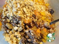 Соединяем с пшеницей изюм, курагу, мармелад, мак и орехи. |