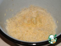 Натереть на мелкой терке 80 г твердого сыра, добавить чеснок, пропущенный через пресс. |