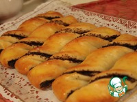 Раскатать прямоуголник, на середину положить начинку, так чтобы по краям осталось тесто без начинки. |