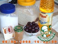 Вынуть косточки из вишен, сложить в кастрюлю, залить кипящей водой с растворенным в ней сахаром. Оставить настаиваться на 30 минут. Рис отварите до полуготовности. Откиньте на дуршлаг.