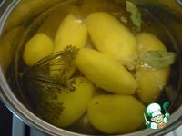 Картофель очистить и отварить в чуть пересоленной воде с добавлением лаврового листа, куркумы (1/4 ч. л.) и веточки укропа. |