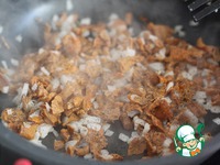 Сверху выложить грибы и на грибы положить оставшийся фарш. |