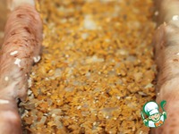Выпекается рулет 35-40 минут при температуре 180 градусов в предварительно разогретой духовке. Из плюсов - он прекрасен как в горячем, так и в холодном виде. |