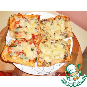 Описание: Мы с мужем часто хотим разную пиццу, и чтобы не спорить, я придумала вот такую пиццу на два вкуса. Но, если честно, в конце мы все равно делимся вкусами)