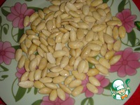 Теперь приступим к рулету. Очистить миндаль от шкурки. Для этого залить его кипятком на 10 минут. Потом воду слить, залить холодной водой буквально на минутку и легко очистить орешки. |