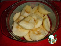 Сначала нужно приготовить начинку, чтобы она немного загустела. Яблоки очистить от кожуры и семян и разрезать на четвертинки. |
