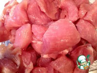 Мясо индейки промыть, обсушить бумажным полотенцем и нарезать небольшими кусочками. |