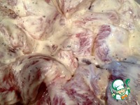 Мясо посолить, поперчить, добавить сметану и давленный чеснок. Перемешать и отправить в холодильник на часик-другой. Время приготовления я указала без учета маринования мяса. |