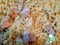 Одновременно с этим выложить мясо в разогретый казанок (или, как у меня, в сковороду Zepter), накрыть крышкой и пусть томится, пока мы занимаемся подготовкой риса. |