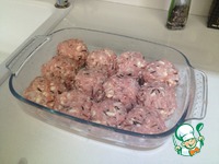 Формируем мокрыми руками тефтельки среднего размера, складываем их плотно в форму для выпекания. |