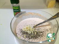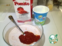 Добавить в подливу мелко нарезанный чеснок, сушеный базилик, соль, перец. |