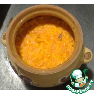 Морковь натереть на крупной терке. Посолить и поперчить. |