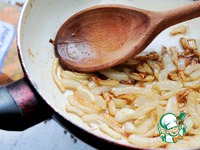 На сковороде разогреть оливковое масло, обжарить лук до зототистого цвета, он должен стать хрустящим. Переложить лук в отдельную тарелочку, масло мы будем использовать дальше. |