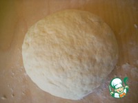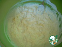 Добавить просеянную муку с разрыхлителем. Замесить не очень крутое тесто. Оно будет немного липким. Тесто положить в пакет и убрать ненадолго в холодильник, пока мы будем готовить начинку. |