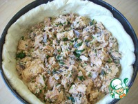 Выкладываем на тесто нашу рыбку с зеленью. |