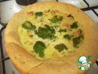 Вдавливаем в пирог несколько соцветий брокколи. Отправляем пирог в разогретую до 180 градусов духовку на 40-45 минут. |