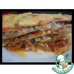 Лист лазаньи, соус «Бешамель», грибы, сыр |