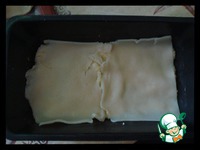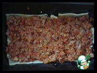 На дно формы для запекания наливаем немного соуса «Бешамель». Сверху кладём лист лазаньи |