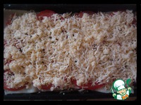 И затираем сыром. Запечь в духовке 30 мин. Разрезаем на кусочки. Аккуратно, с помощью лопатки, перекладываем на тарелку. |