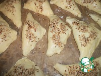 После того как все конвертики готовы... складываем их на противень, смазываем яйцом, посыпаем предварительно обжаренным кунжутом и ставим в духовку на 20-30 мин. при температуре 190 |