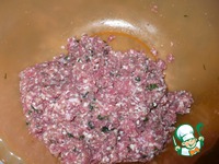 Делаем фарш. Мясо прокручиваем 2 раза, добавляем туда рис, мелко нарубленную кинзу, яйца, солим и перчим по вкусу. |