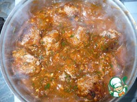 Соусом поливаем фрикадельки, добавляем воду, аккуратно перемешиваем и тушим 20 минут на медленном огне с приоткрытой крышкой. |