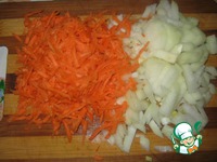 Морковь натереть на крупной терке, луковицу мелко порезать. |