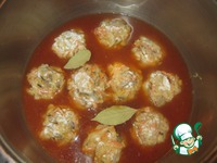 В воде (0,5 л) растворяем 2 столовые ложки томатной пасты. Выкладываем получившиеся шарики в кастрюлю и заливаем получившимся соусом. Тушим на медленном огне 30 минут. |