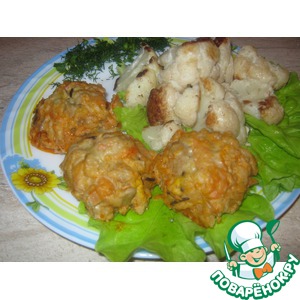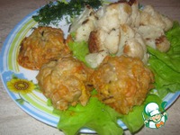 Тефтельки готовы! Можно подать как самостоятельное блюдо со сметанкой, свежей зеленью, так и с гарниром, я отваривала соцветья цветной капусты и обжаривала в панировке из яйца. |