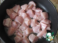 Промыть грудку и нарезать на средние кусочки. Разогреть сковороду и обжарить грудку до золотистой корочки. Посолить, поперчить по вкусу. |