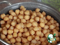 Высыпаем отваренный нут на дуршлаг или сито и оставляем остывать и просыхать от излишней влаги. |