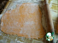 Разделить тесто на части. Чем меньше будет каждый кусочек теста, тем удобнее будет его раскатывать. Тонко раскатать на посыпанном мукой столе. |