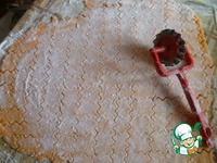 Я нарезала на квадратики с помощью вот такого ножика. Сверху посыпать мукой и рукой разгладить по всему пласту теста. |