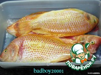 Рыбу почистить и сделать надрезы крест-накрест, посолить, сбрызнуть лимонным соком и чуть соевым соусом, дать пропитаться, пока готовим соус. |