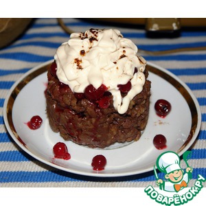 В креманку слоями выкладываем шоколадную кашу, клюкву (или другую ягоды), сверху выкладываем творожный крем. Украшаем ягодами или какао. |