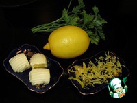 Приготовить лимонное масло из лимонной цедры, добавив в него ложку лимонного сока и немного рубленой петрушки. |