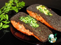 Рыбу выложить на блюдо кожей наверх, положить на каждый кусок шарик лимонного масла. Оно слегка подтает на горячей рыбе и пропитает жареный мак. |