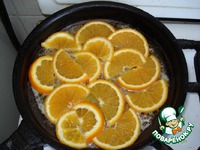 Добавляем горчицу и кружочки апельсинов. Прогреваем 1 минуту. |