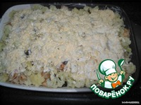 Выкладываем первый слой нашего пирога (это был так сказать первый), делал и с картофельным пюре внизу, получается еще вкуснее |