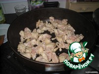 Куриную грудочку, режем на небольшие кусочки, солим перчим и присыпаем мукой, обжариваем на сливочном масле. |
