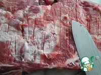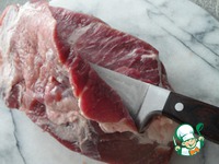 Теперь проделаем то же самое, только слева направо. Если мясо получилось не совсем одинаковой толщины, то отбейте его немного. |