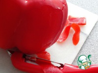 Перец можно почистить, а можно и запечь в духовке и потом шкурку обтянуть. Разрезать пополам. |