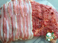 Мясо смазать томатной пастой. Посолить, поперчить и, если хотите, посыпать красной паприкой. Затем выложить бекон. |