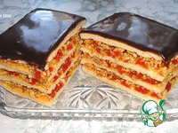 Выпечь корж при температуре 180-200 градусов 10-15 минут и разрезать на 3 или на 4 равные части. |