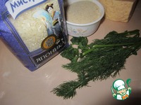 Рис отварим в воде соотношение жидкости 1:1, как на суши, дадим ему остыть. Сыр натрем на мелкой терке с чесноком, зелень измельчим. |