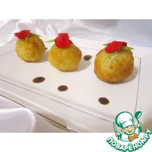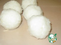 Зафаршируем рис сырной смесью и скатаем шарики. |