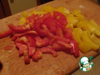 Когда до конца варки фасоли остается минут 10, режем перец. |
